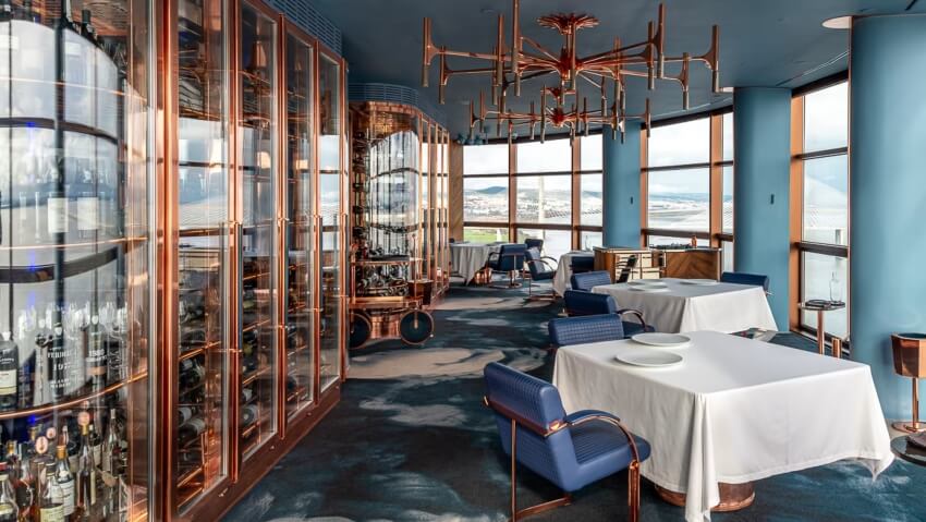 The menu at Fifty Seconds includes notable dishes such as Red Mullet with crispy scales and Algarve shrimp, and sea crayfish with foie gras flavored with Armagnac. The location at the top of the tower provides a stunning view over Lisbon, making it an ideal spot for a special dinner or unique occasion.
